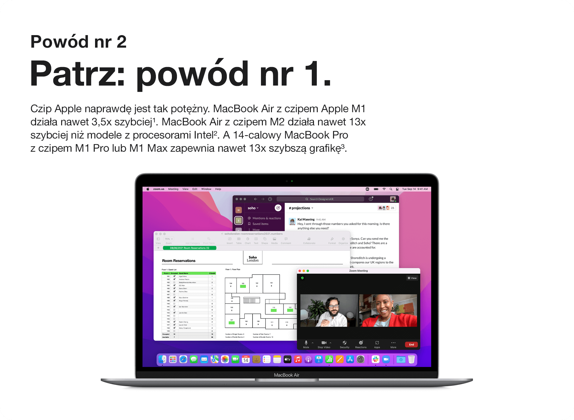 1. Testy przeprowadzone przez Apple w październiku 2020 r. na przedprodukcyjnych egzemplarzach MacBooków Air z czipem Apple